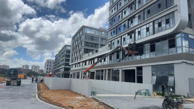 本工程为福清市汇融创业投资集团有限公司汽车城,共8栋楼,总建筑面积为:100168.51㎡,地上建筑面积为:84013.51㎡,地下1层,地下建筑面积为:16155㎡,建筑地面总高度23.90m,最高层数6层。